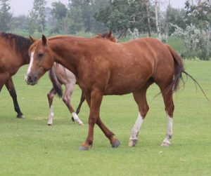 This is a pretty mare with a real cool pedigree. We are looking forward to her future foals.